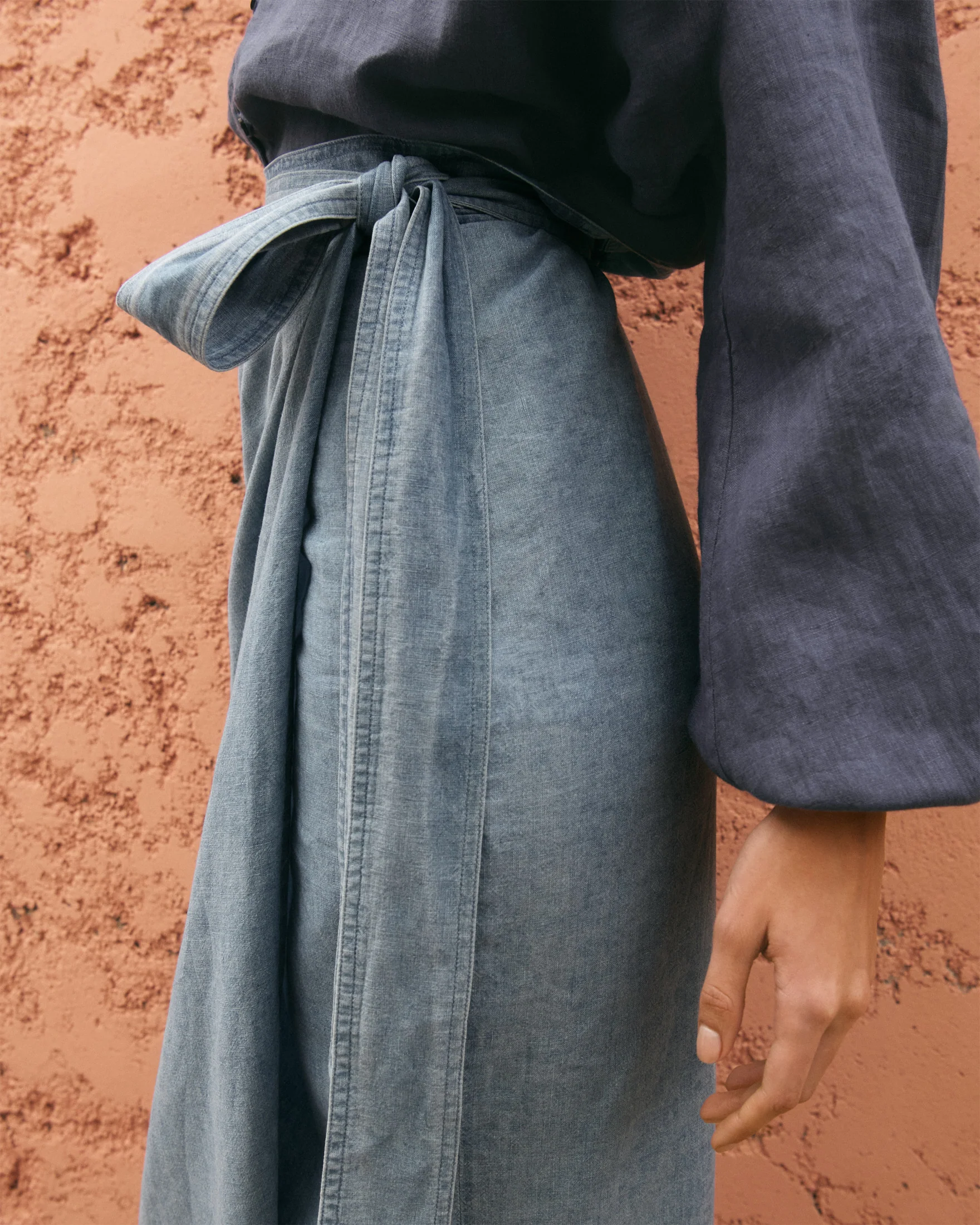 Effortlessly chic, the Naxos long skirt is crafted from a chambray linen blend, offering a perfect balance of style and comfort.